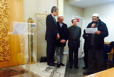 A deux jours du 70e anniversaire de la libération du camp d’Auschwitz, le Rabbin nous confiait sa joie et son émotion d’accueillir ses frères prêtre, pasteur et imam dans sa synagogue. Ces dix-sept bougies, ajoutait-il, ne sont pas seulement allumées pour faire mémoire des dix-sept victimes, mais pour témoigner aujourd’hui de la volonté de chacun d’être instrument de paix dans un monde si malmené.