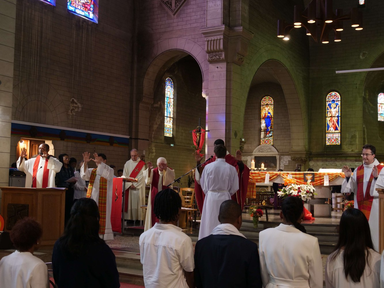 Dimanche 21 mai 2023, vingt jeunes lycéens et cinq adultes ont reçu le sacrement de confirmation, en l'église Saint-André de Montreuil. Une messe festive et joyeuse présidée par Mgr Philippe Guiougou, évêque nommé de Guadeloupe. Photos : (c) Antoine Dos Santos.