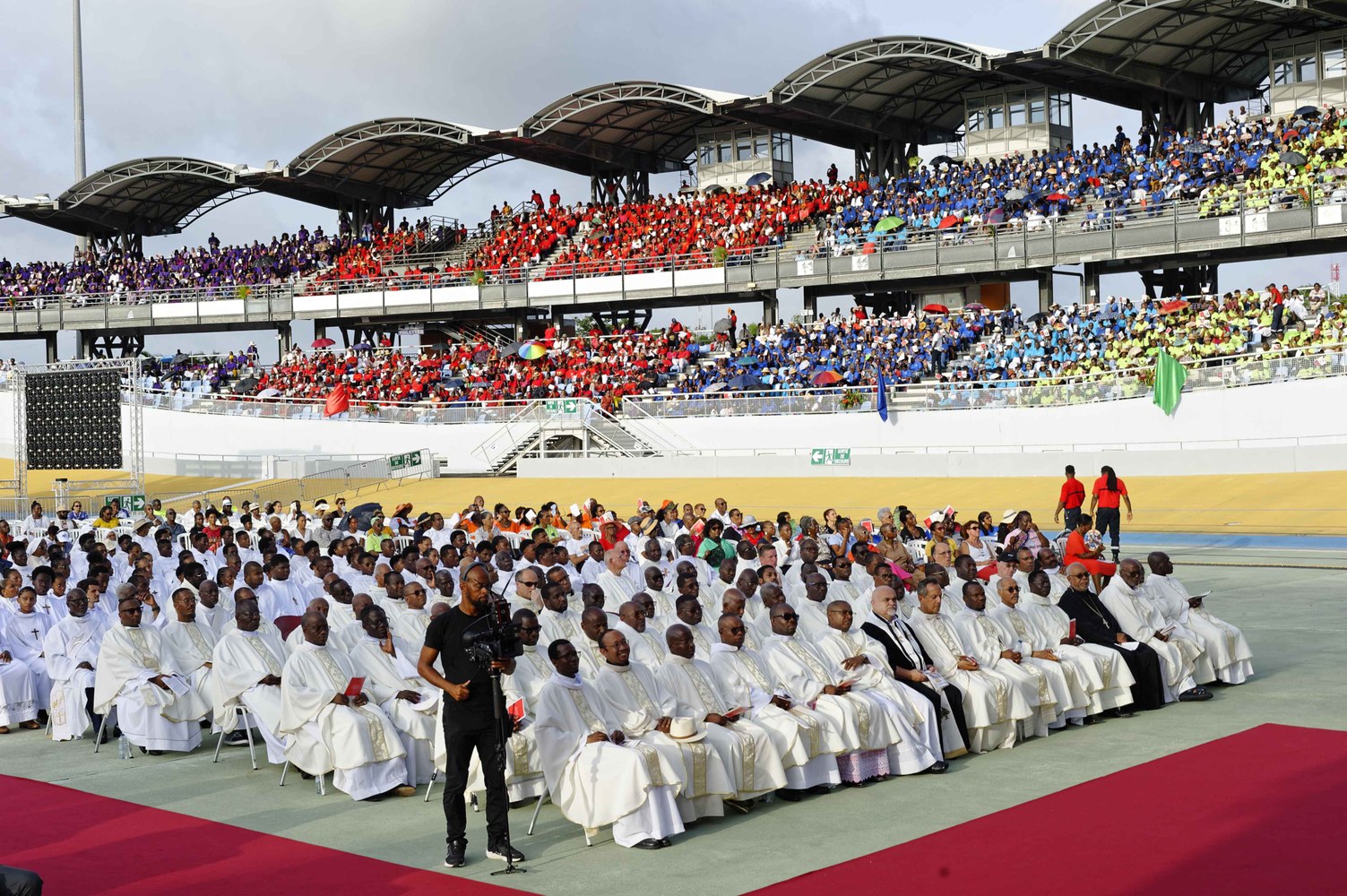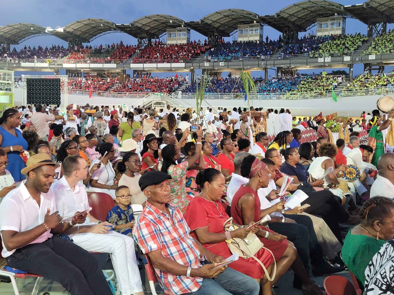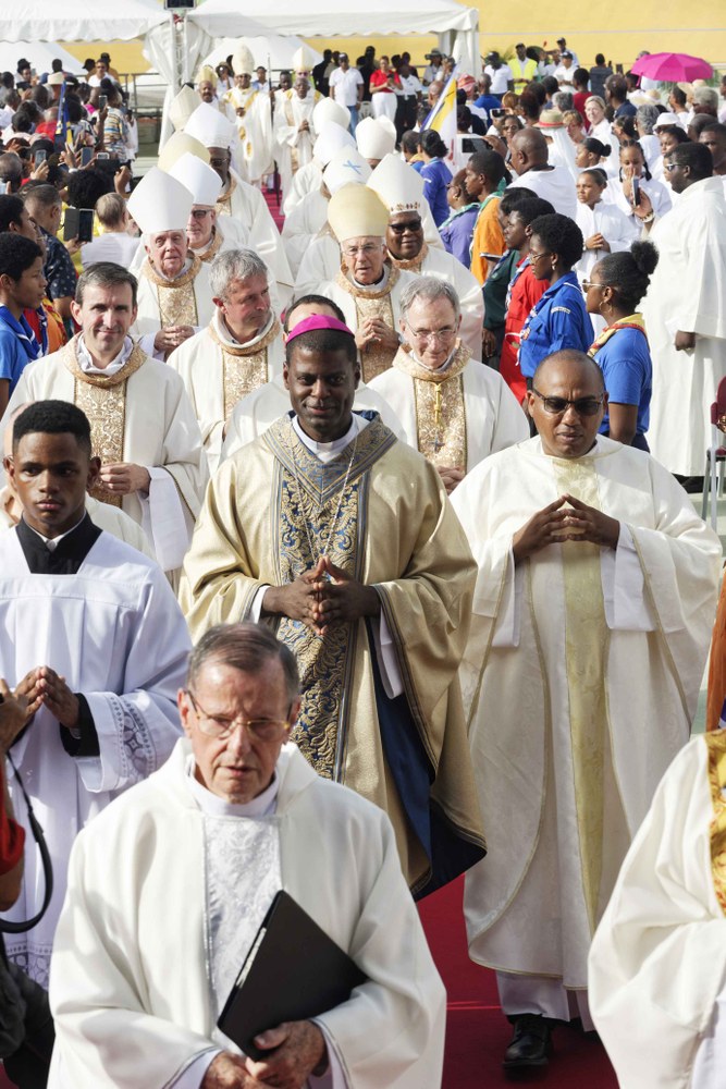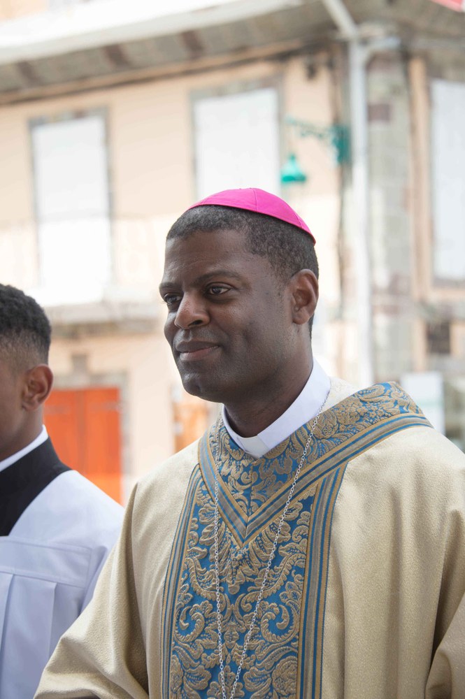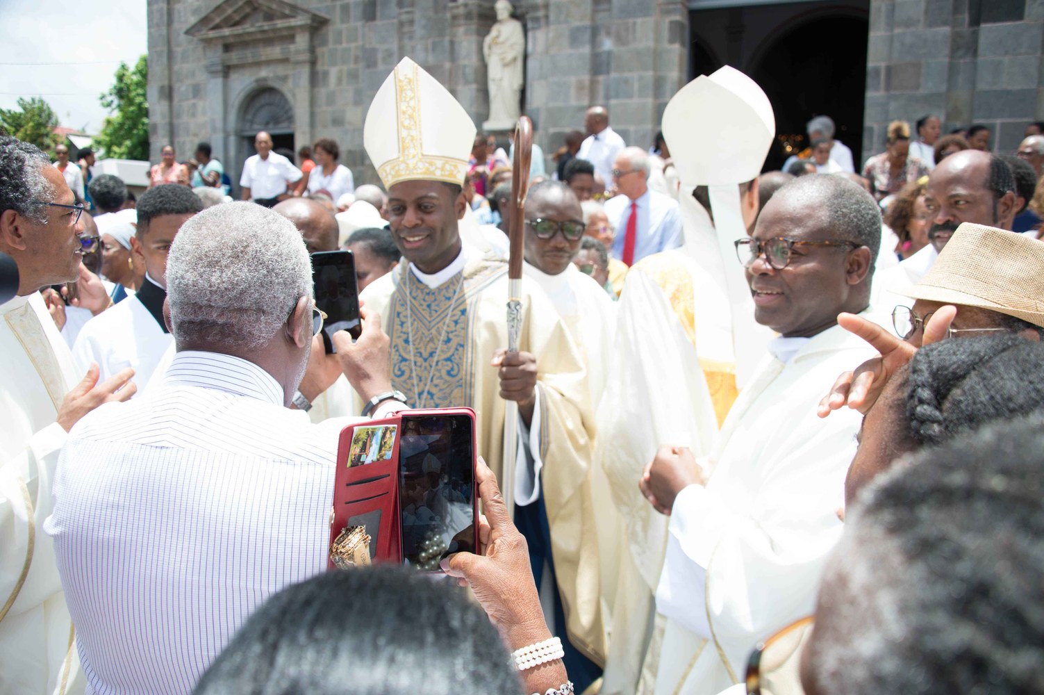 Photos-souvenirs de l'ordination épiscopale du Père Philippe Guiougou, le 9 juillet 2023, au vélodrome de Gourde. Notre ancien vicaire général est officiellement installé comme évêque de Basse-Terre et Pointe-à-Pitre.