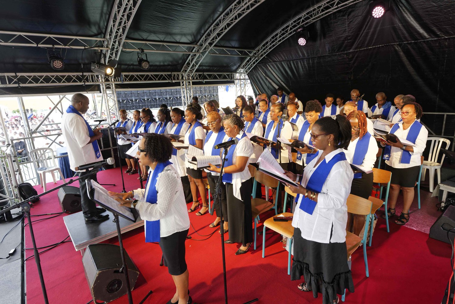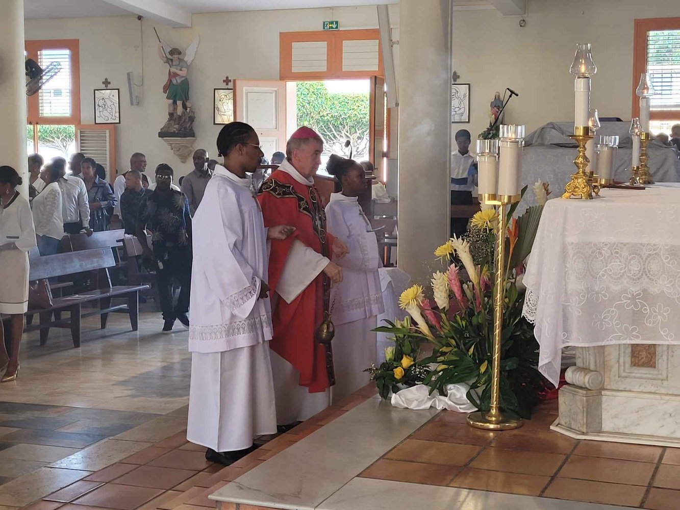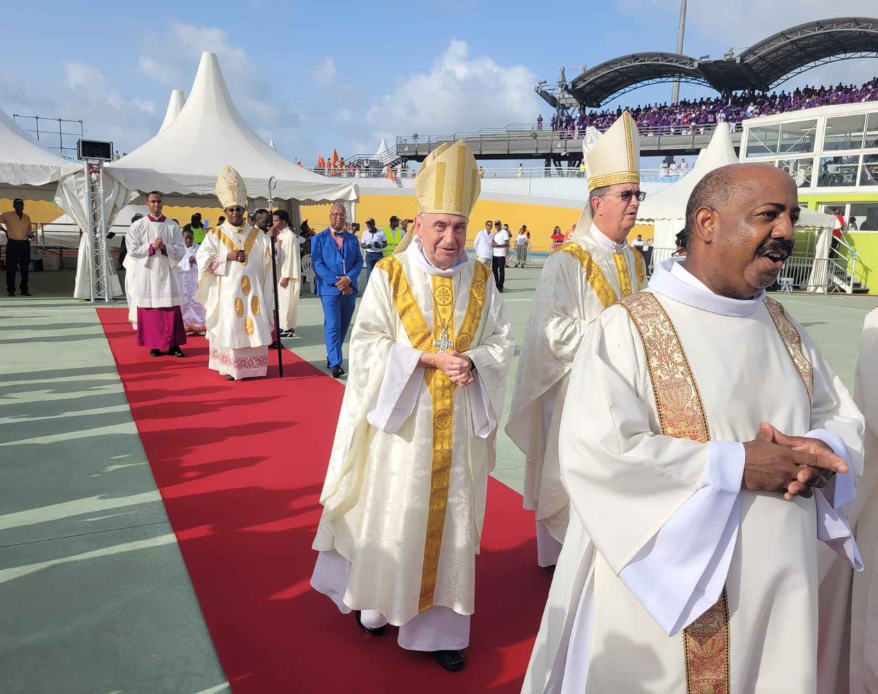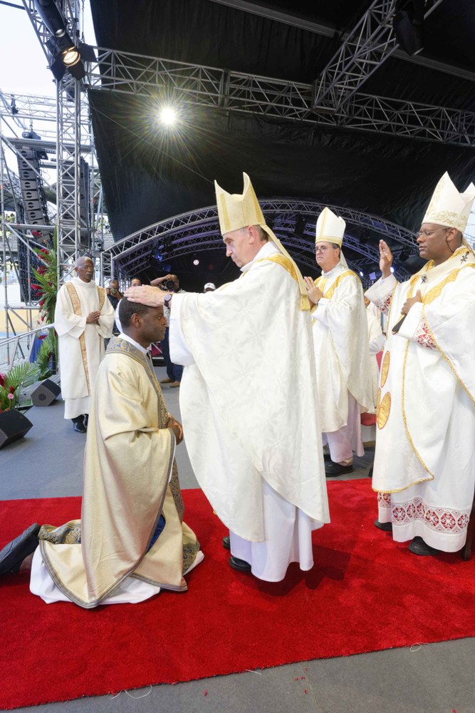 Photos-souvenirs de l'ordination épiscopale du Père Philippe Guiougou, le 9 juillet 2023, au vélodrome de Gourde. Notre ancien vicaire général est officiellement installé comme évêque de Basse-Terre et Pointe-à-Pitre.