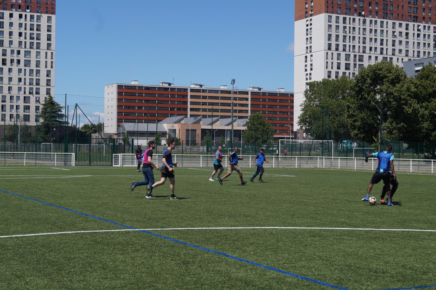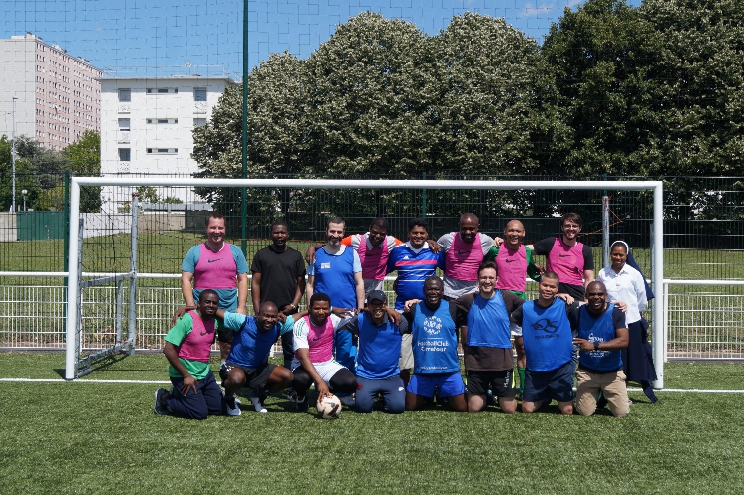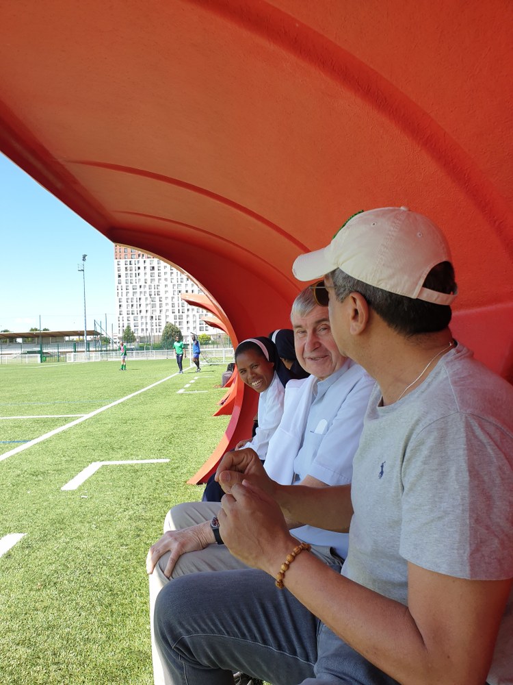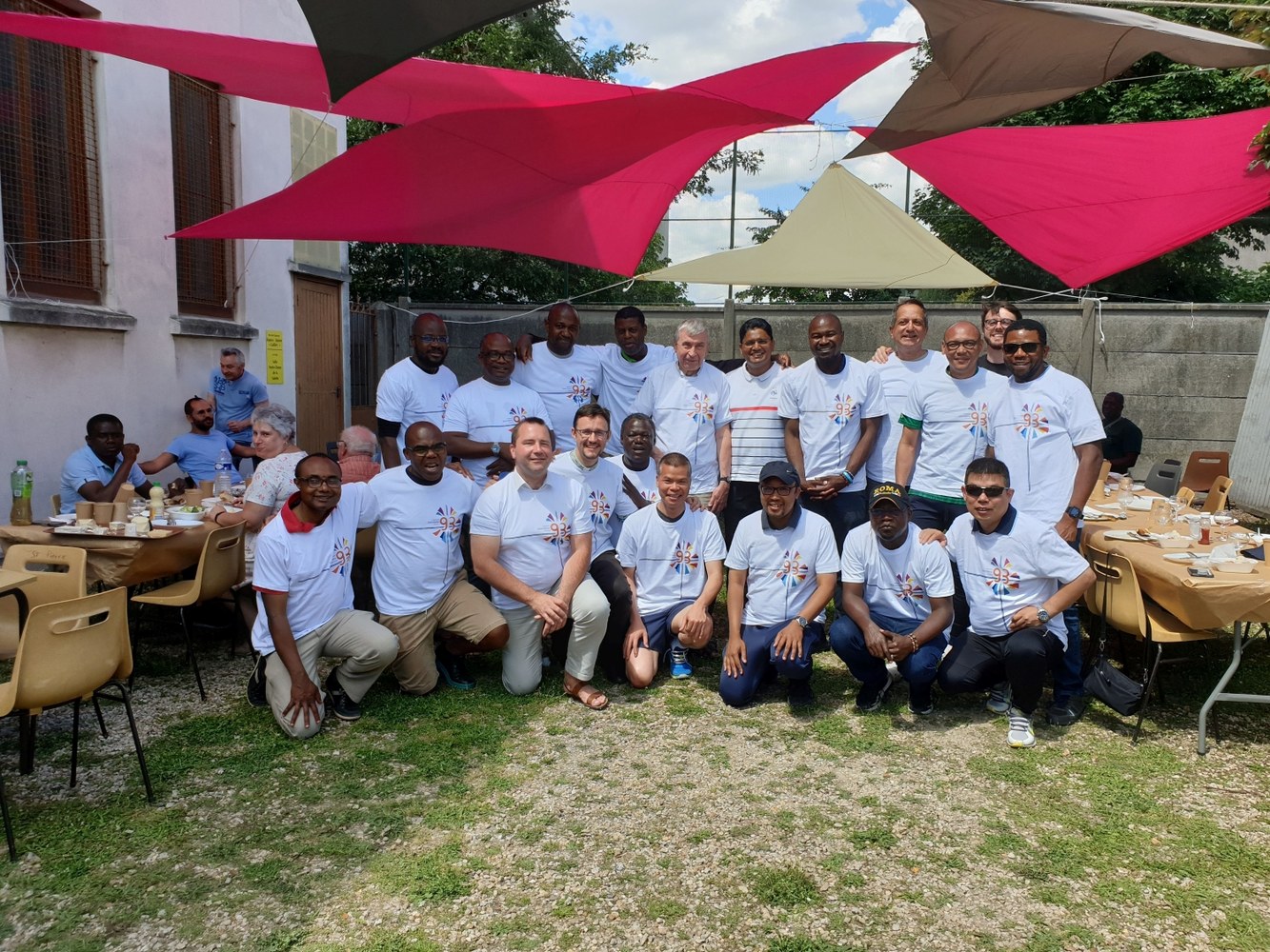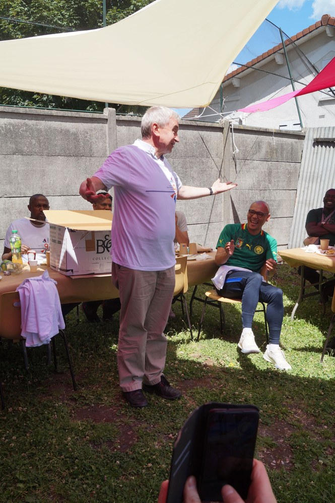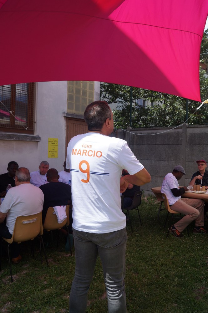 Neuilly-sur-Marne, le 27 juin 2022. Quelques photos-souvenirs de la rencontre conviviale mensuelle des prêtres du diocèse : match de foot pour les uns, partie de pétanque pour les autres, suivis d'un déjeuner estival et de la remise des nouveaux maillots de foot.