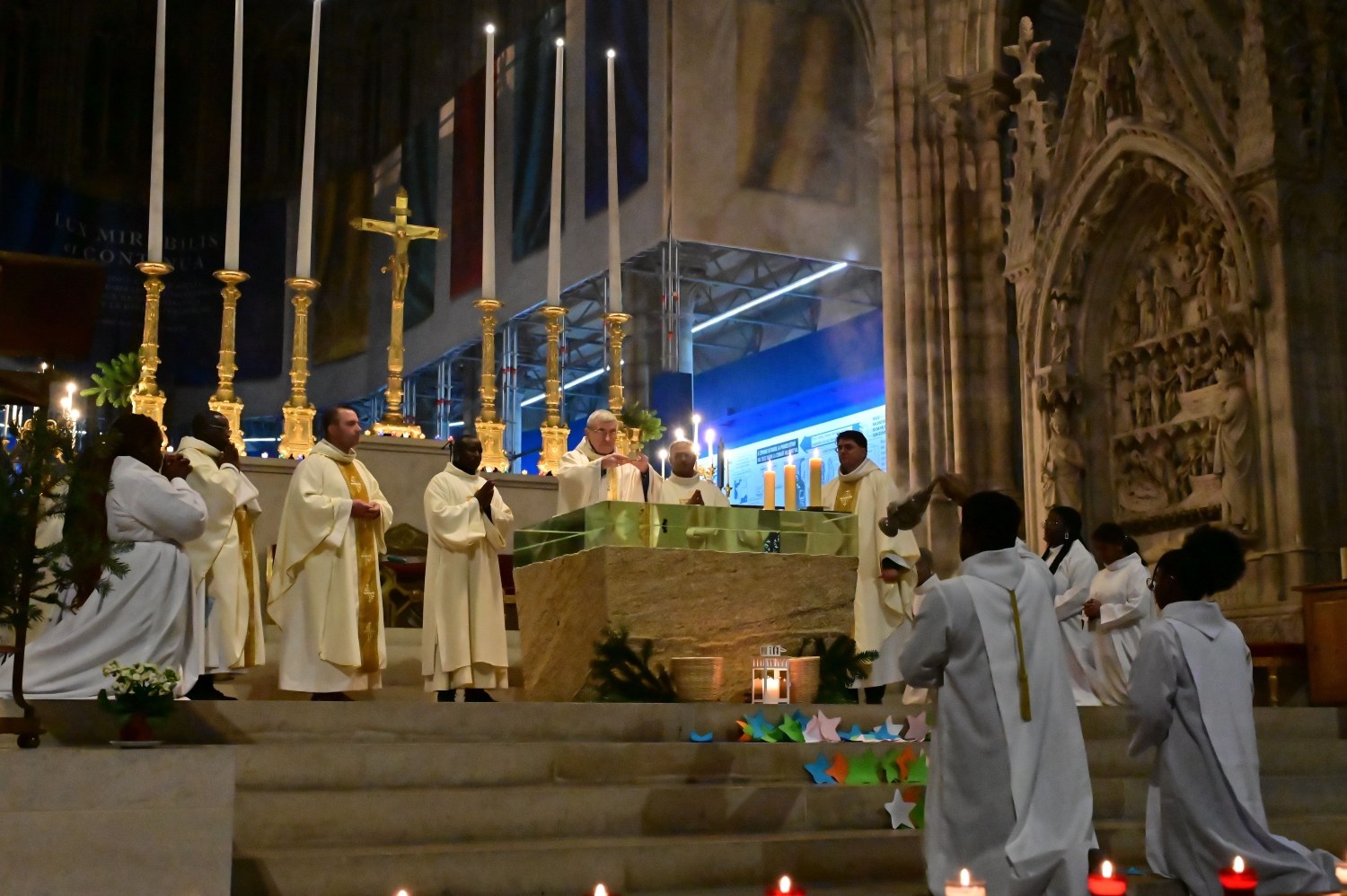 Photos-souvenirs de la nuit de Noël, le 24 décembre 2022, à la Basilique-Cathédrale de Saint-Denis. Un grand merci à M. Didier Bazin, le photographe, pour ces belles images !