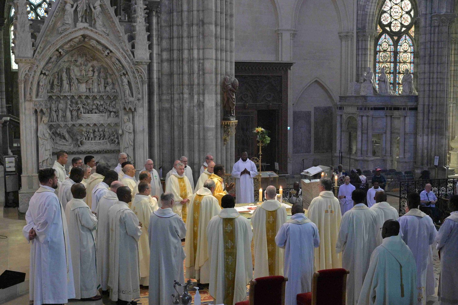 Le père Philippe Guiougou, vicaire général du diocèse, a été nommé par le Pape évêque de Basse-Terre et Pointe-à-Pitre. Il rejoindra bientôt la Guadeloupe. Samedi 24 juin, une messe d'action de grâce était célébrée à la basilique Saint-Denis. Nous avons rendu grâce au Seigneur pour son ministère fécond. La célébration s'est poursuivie par un temps festif dans les jardins de la basilique. Photos de Didier Bazin
