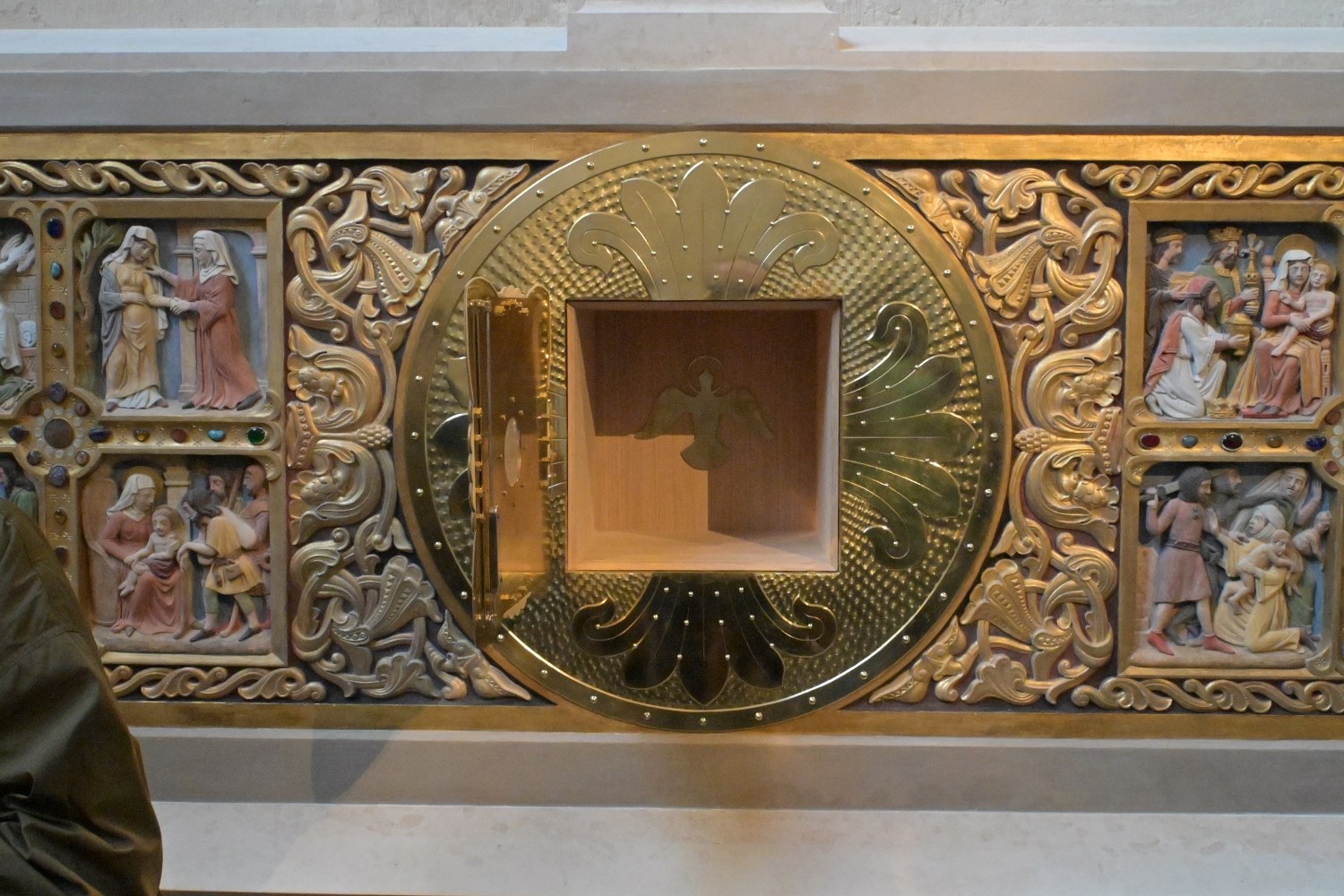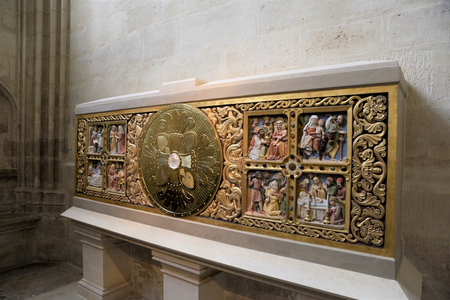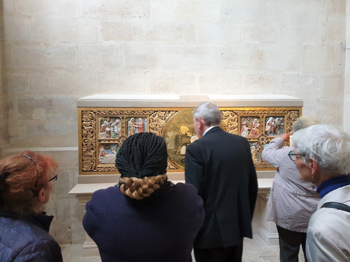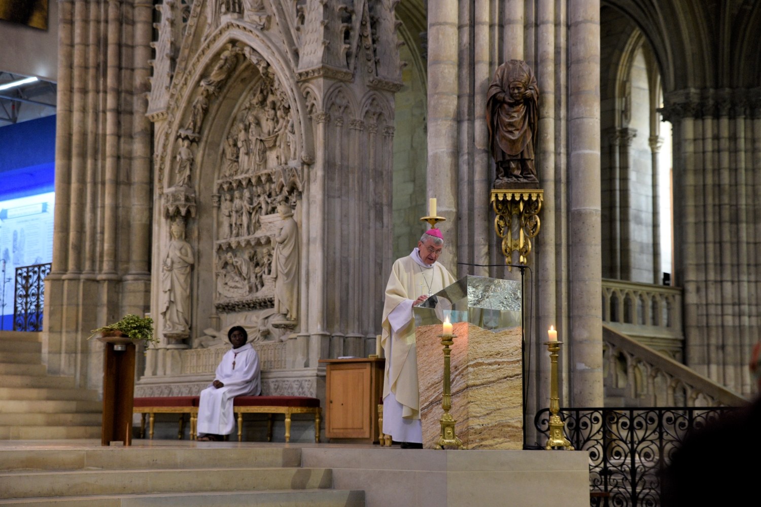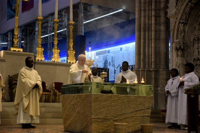 A peine rentré du pèlerinage diocésain à Lourdes, notre évêque a présidé l'inauguration officielle de la nouvelle chapelle du Saint Sacrement, en la Basilique Cathédrale Saint-Denis, le 29 mai. Le chantier de la chapelle et de la restauration du bas-relief accueillant un nouveau tabernacle a été présenté par les artisans, avant la messe. A l'issue de la célébration, le nouveau tabernacle a été inauguré.