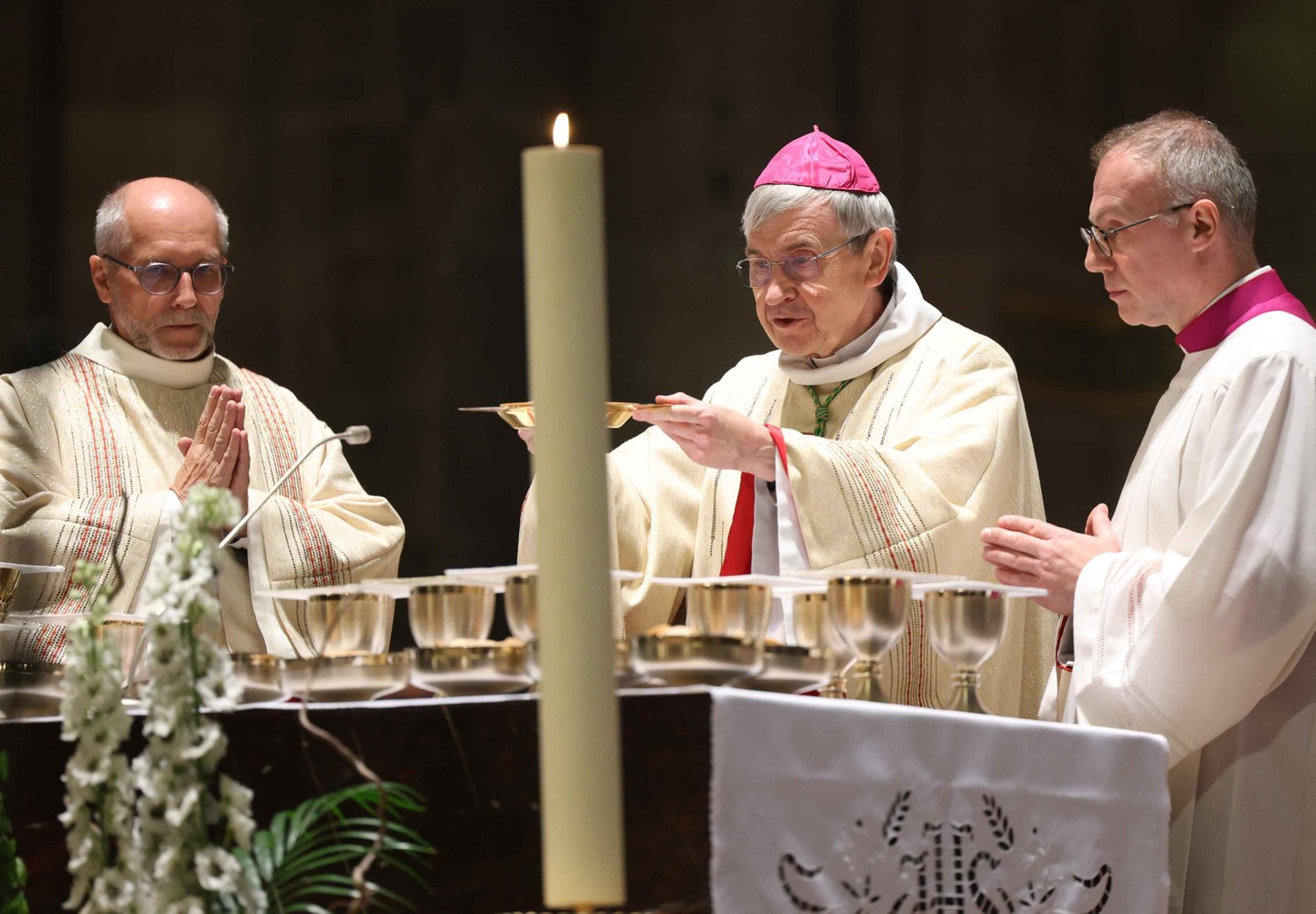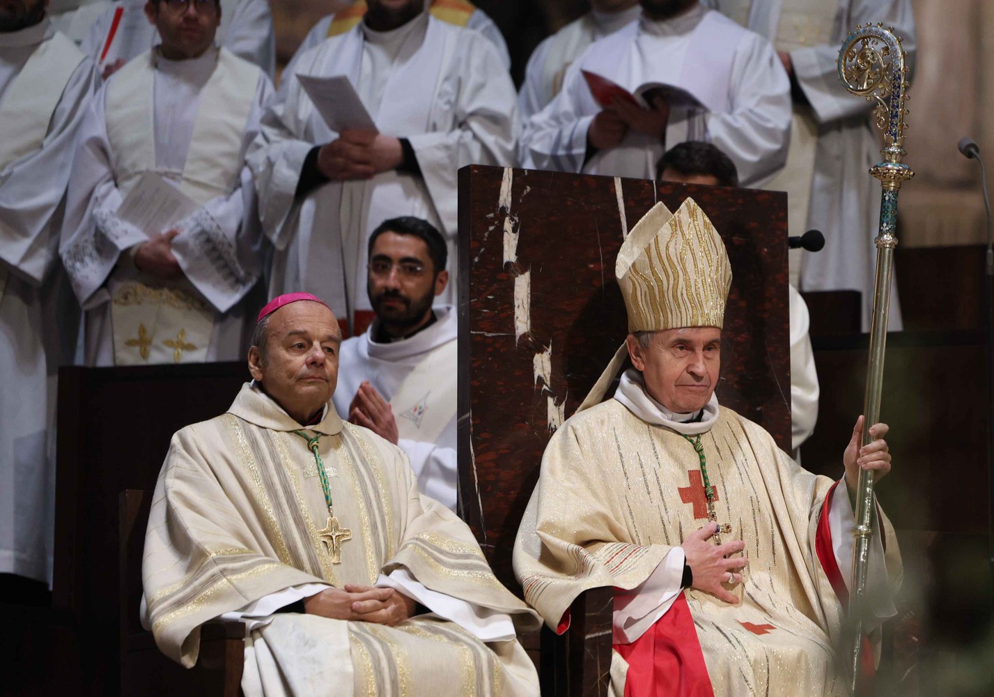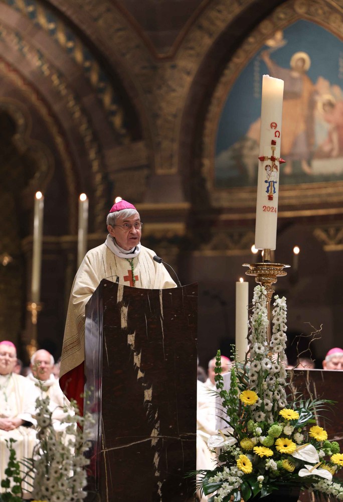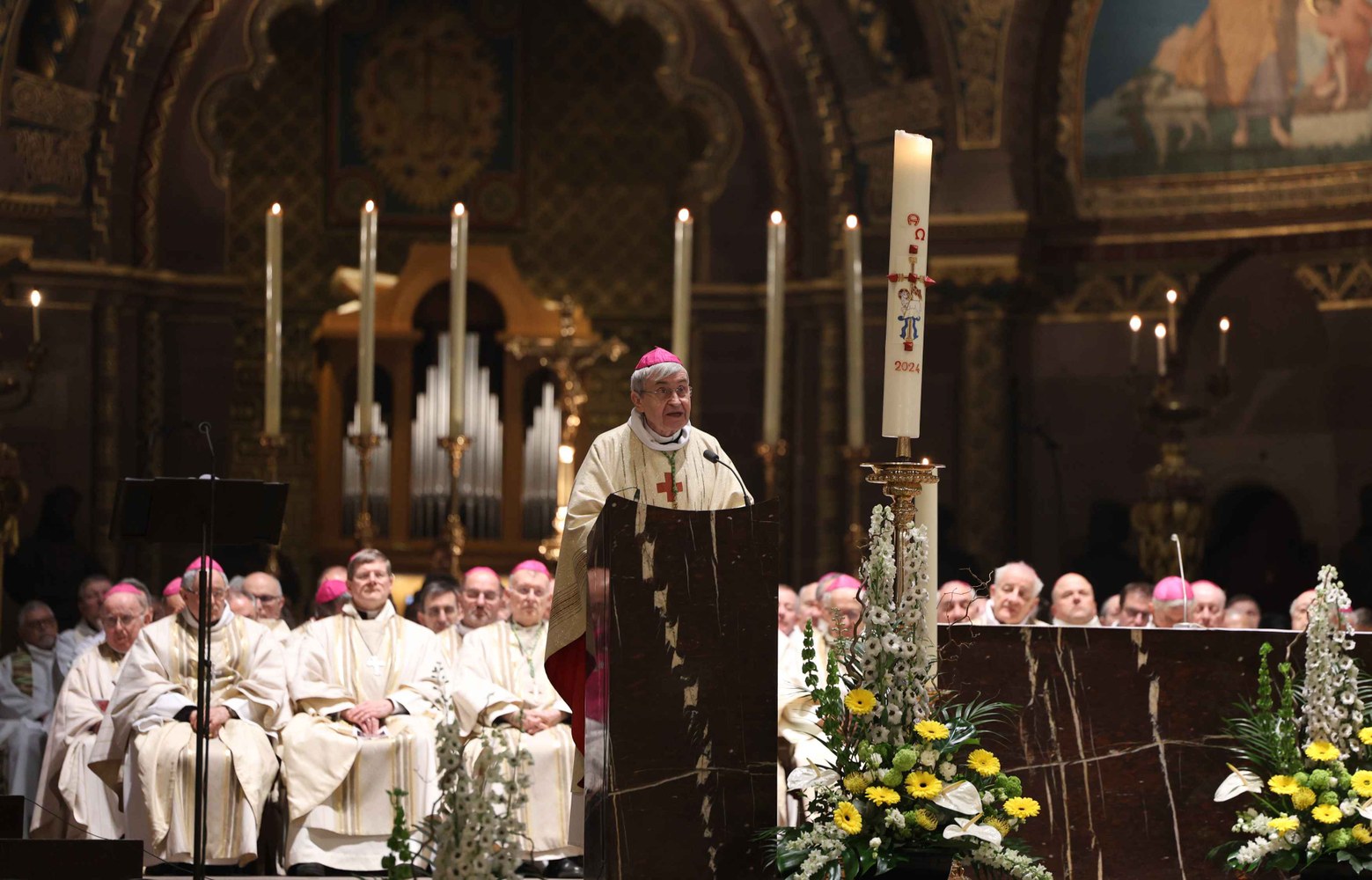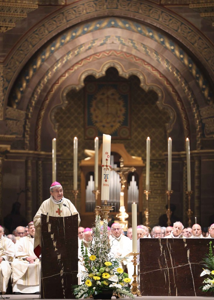 Nommé archevêque de Strasbourg, Mgr Pascal Delannoy a été installé dimanche 21 avril 2024, en la cathédrale Notre-Dame de Strasbourg. Photos : Frédéric Maigrot