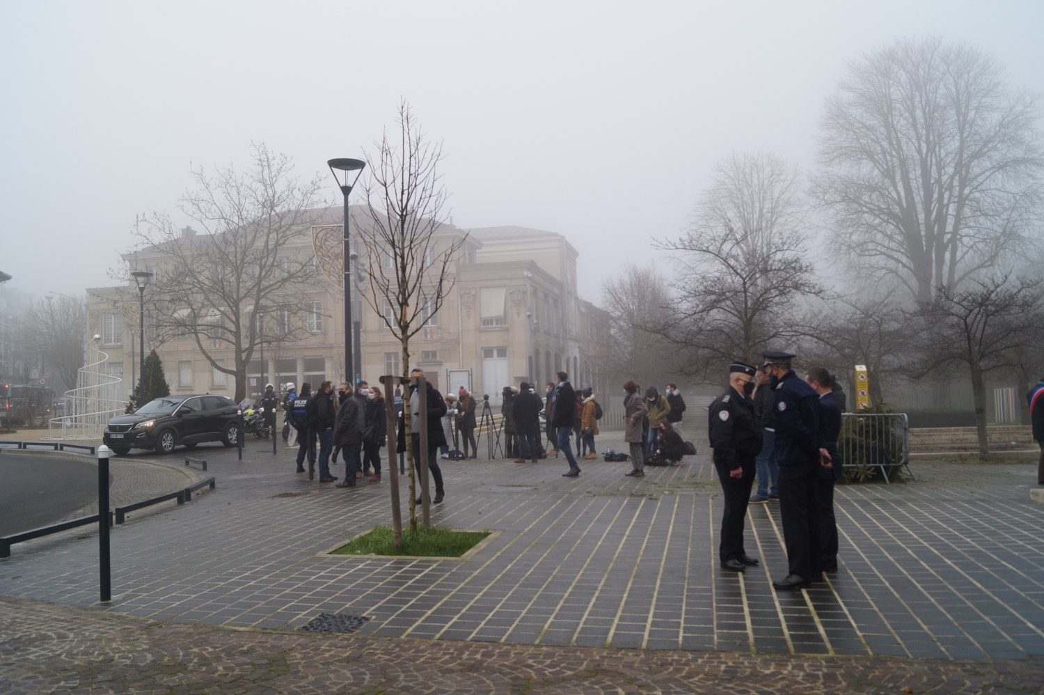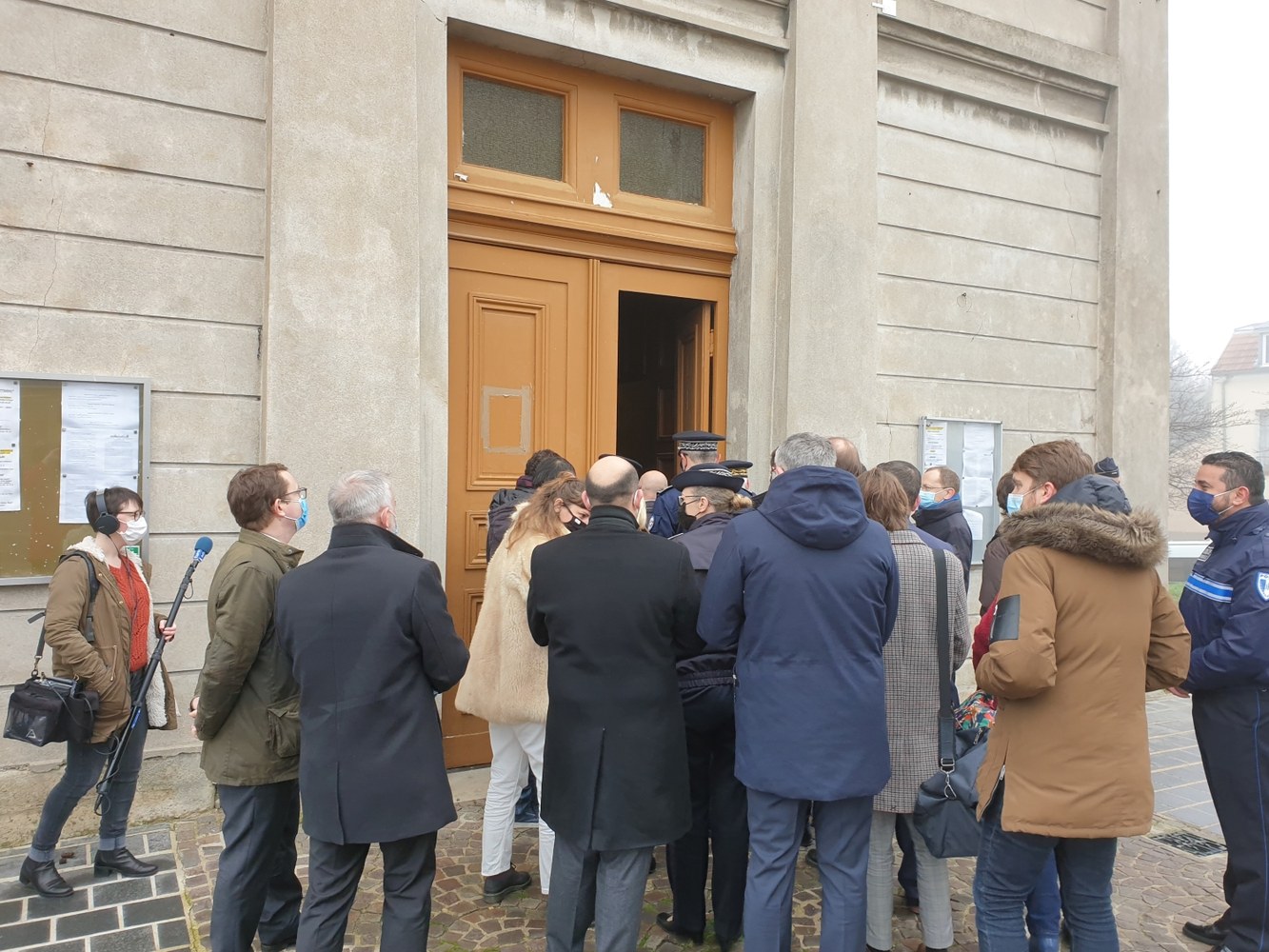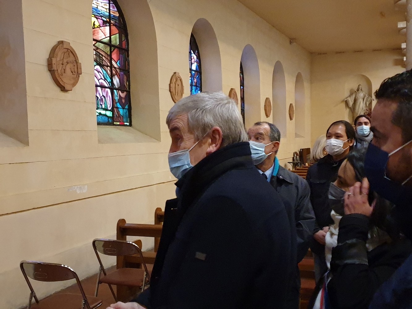 Photos : visite du Ministre de l'Intérieur et du Préfet, après la profanation de l'église de Romainville