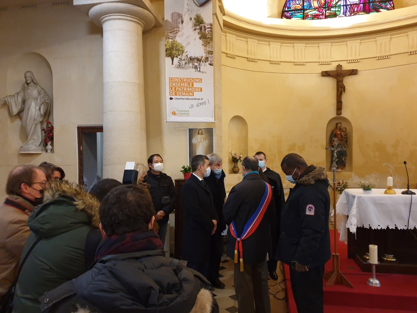 Photos : visite du Ministre de l'Intérieur et du Préfet, après la profanation de l'église de Romainville — Diocèse de Saint-Denis-en-France