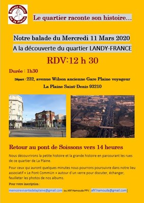 Le mercredi 11 mars à 12 h 30 Quartier Landy-France