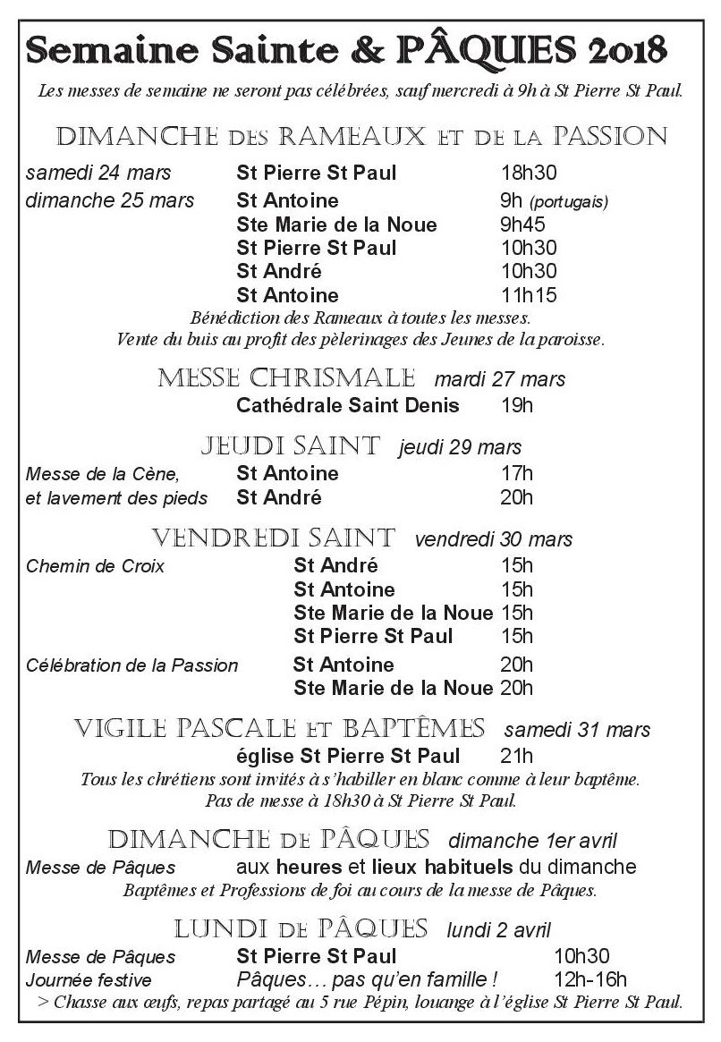 Semaine Sainte et PÂQUES 2018 — Paroisses de Montreuil
