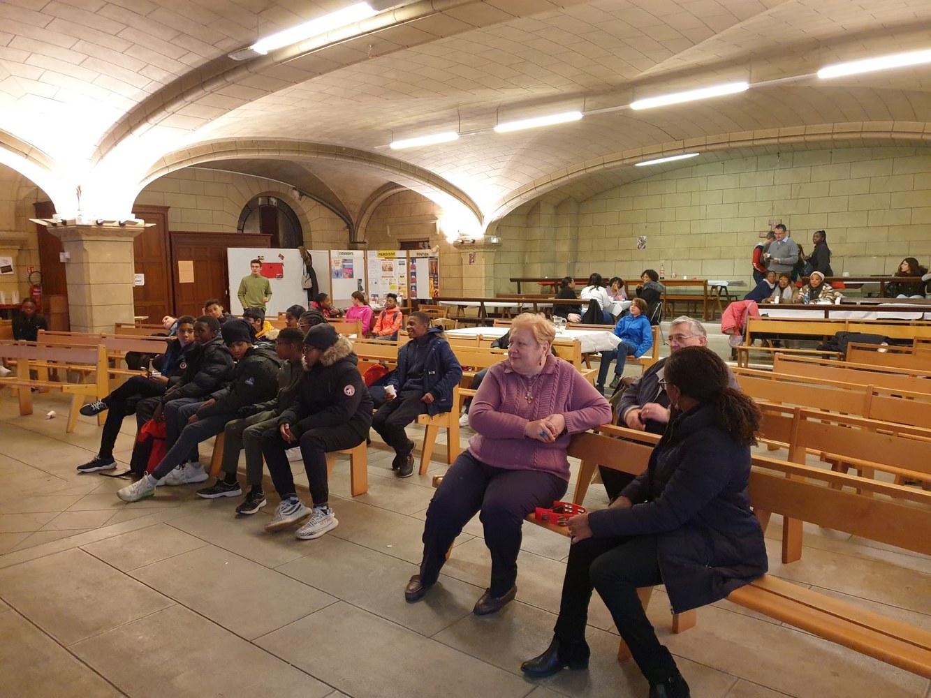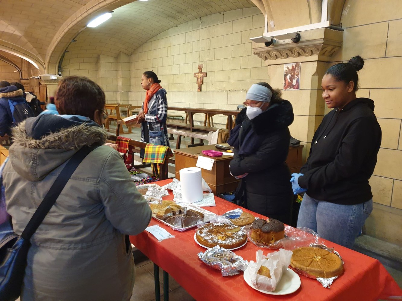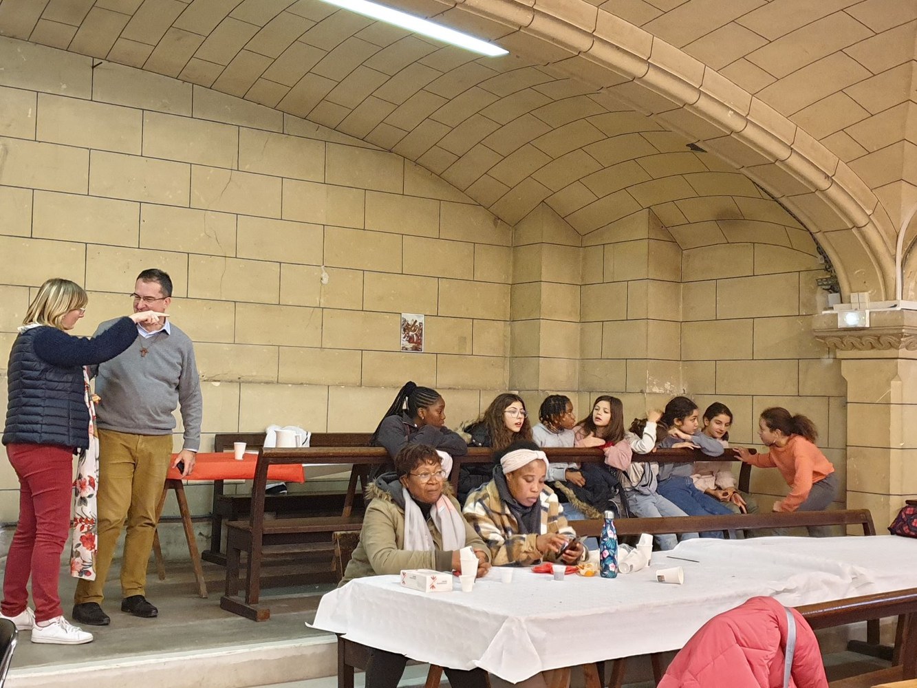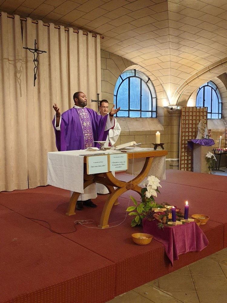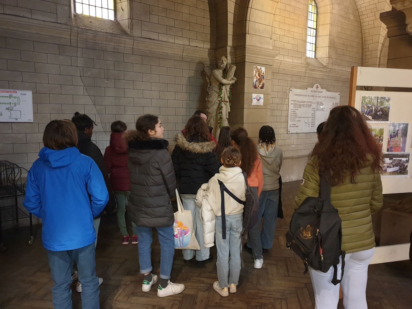 Pour le 2e dimanche de l'Avent, les jeunes collégiens en aumônerie, leurs parents et les paroissiens se sont retrouvés dans la crypte de l'église Saint-André, autour du père Adéodat et du père Dominique. Après une messe festive en l'honneur de Saint André, tous se sont réunis autour d'un repas partagé, suivi d'activités ludiques et priantes, et d'une visite guidée de l'église, conduite par François. Les gâteaux et les sacs vendus au profit de la paroisse ont permis une généreuse collecte, qui servira à financer les pèlerinages et les sorties des jeunes de l'aumônerie. Merci à tous les généreux acheteurs !