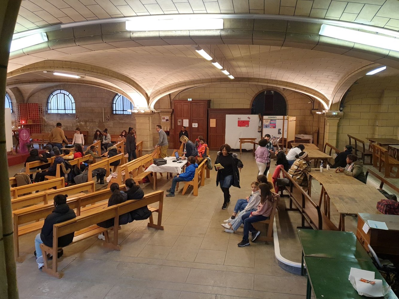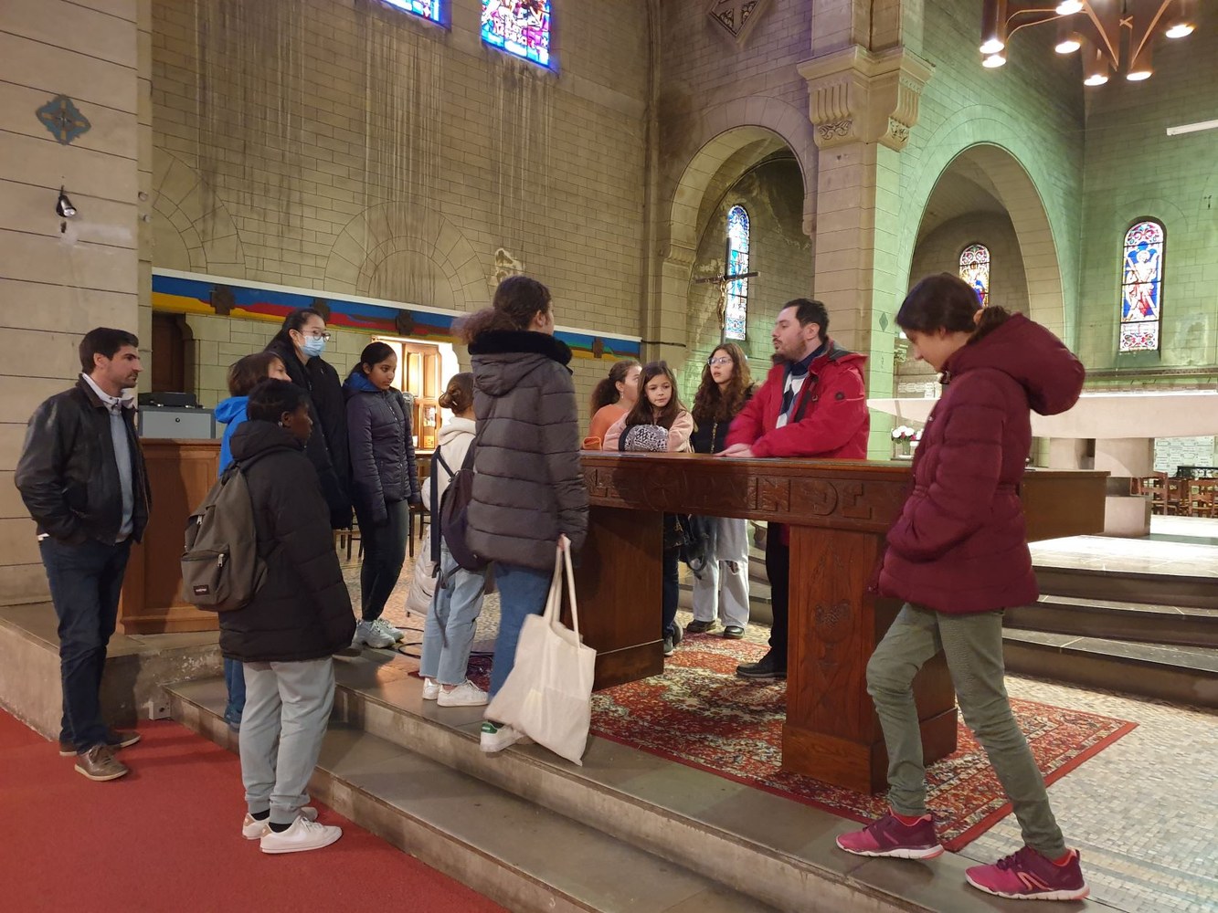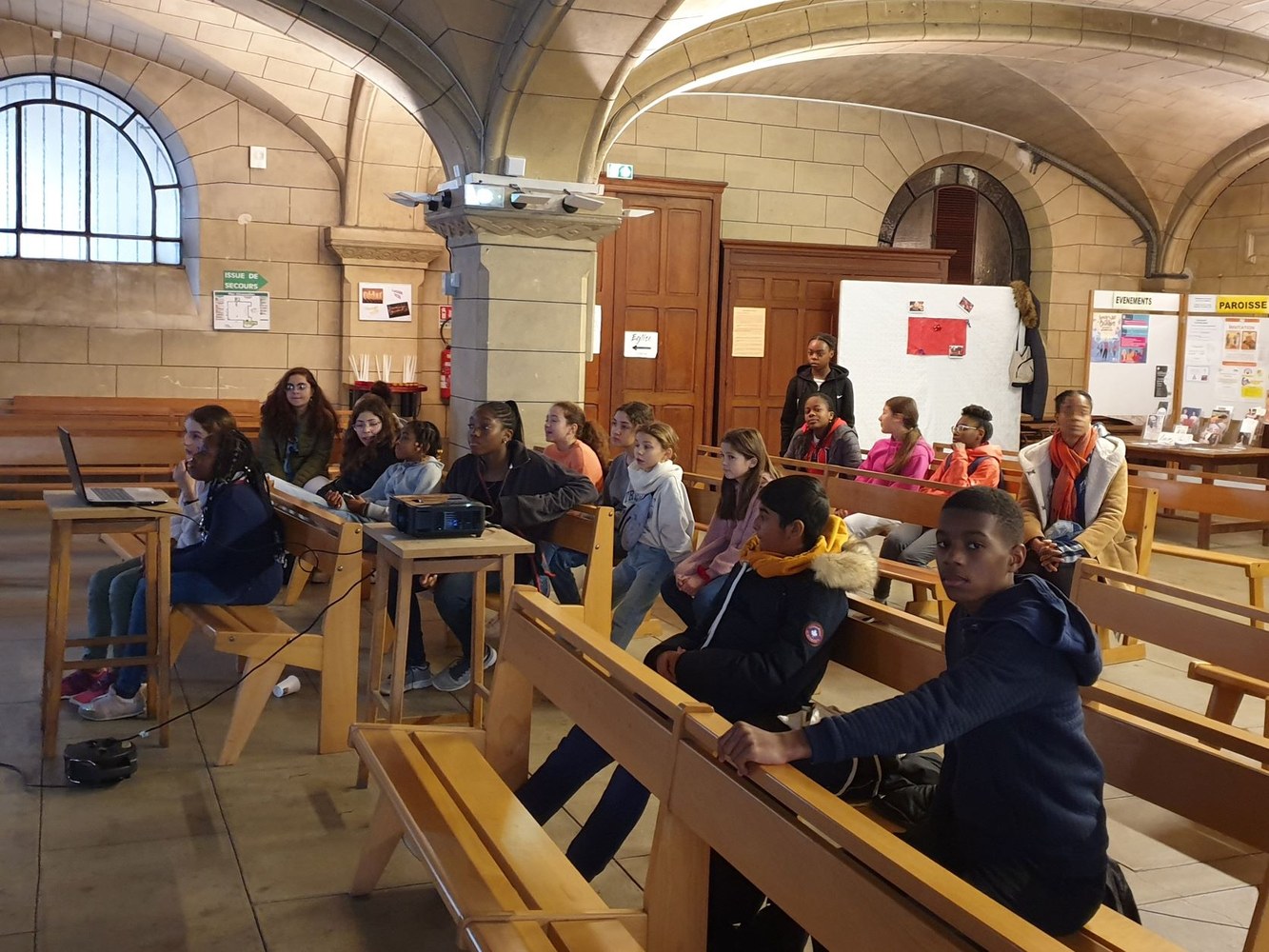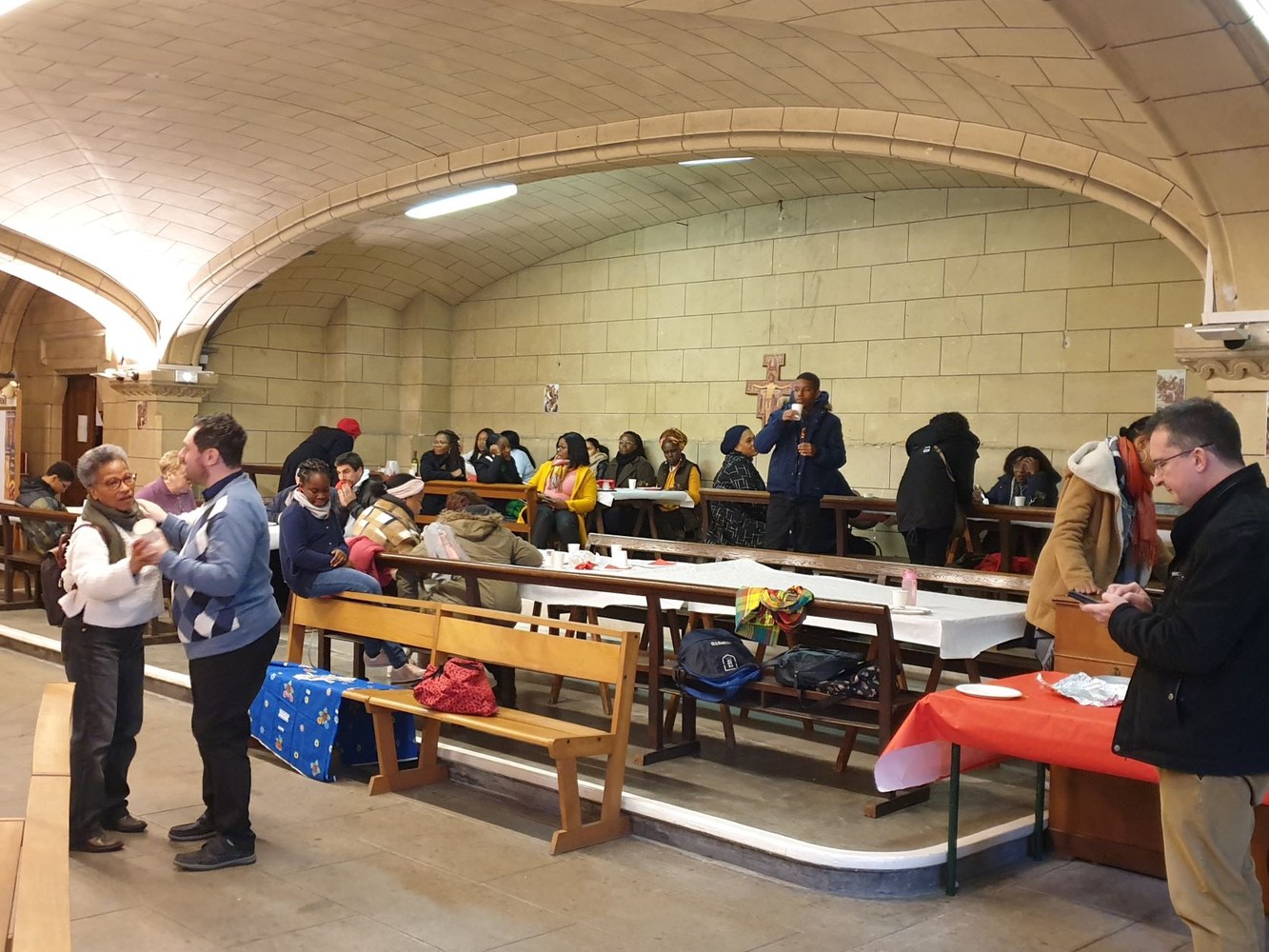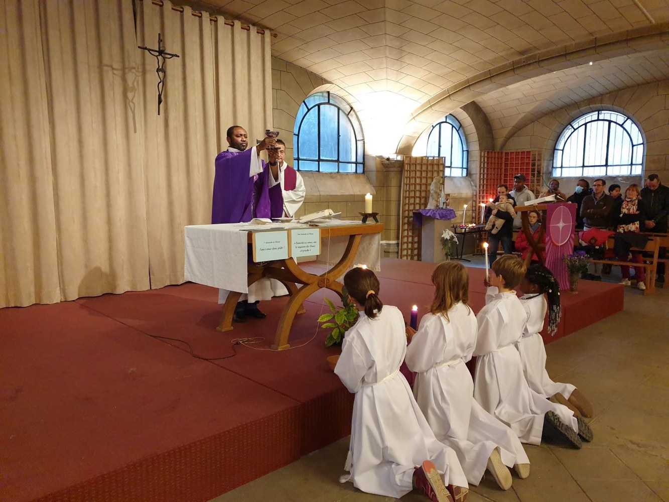 Pour le 2e dimanche de l'Avent, les jeunes collégiens en aumônerie, leurs parents et les paroissiens se sont retrouvés dans la crypte de l'église Saint-André, autour du père Adéodat et du père Dominique. Après une messe festive en l'honneur de Saint André, tous se sont réunis autour d'un repas partagé, suivi d'activités ludiques et priantes, et d'une visite guidée de l'église, conduite par François. Les gâteaux et les sacs vendus au profit de la paroisse ont permis une généreuse collecte, qui servira à financer les pèlerinages et les sorties des jeunes de l'aumônerie. Merci à tous les généreux acheteurs !