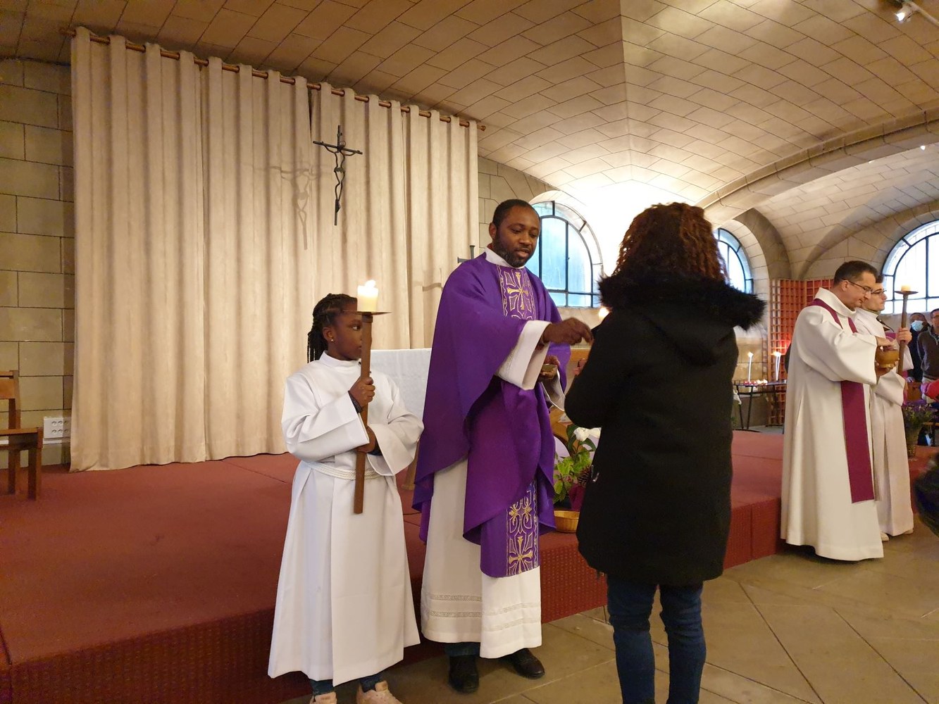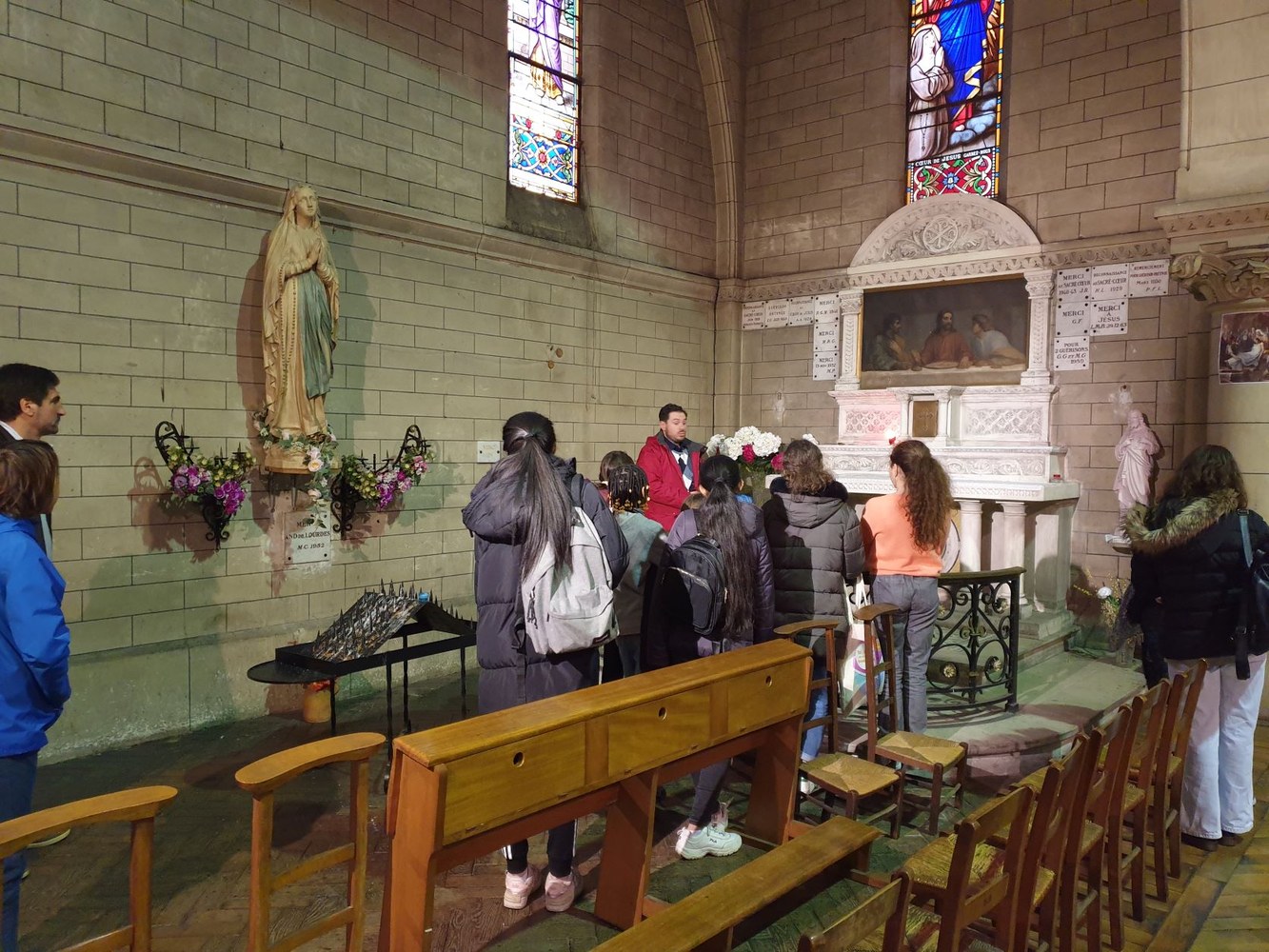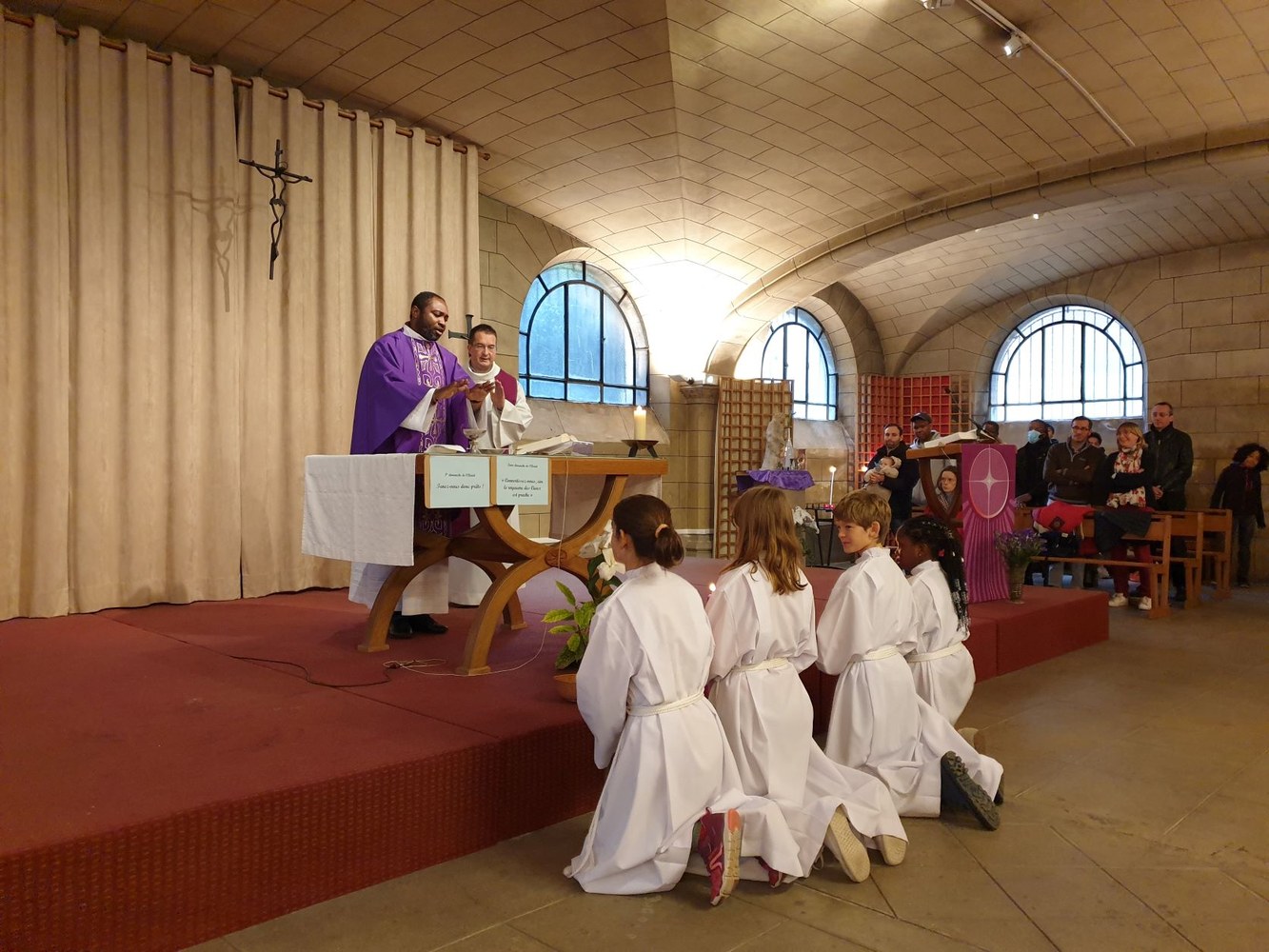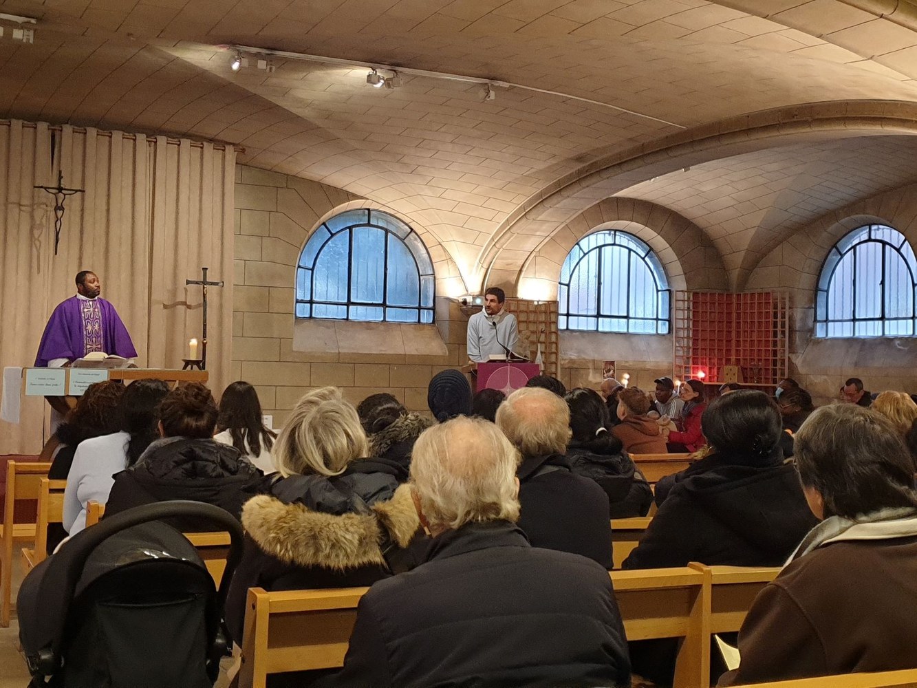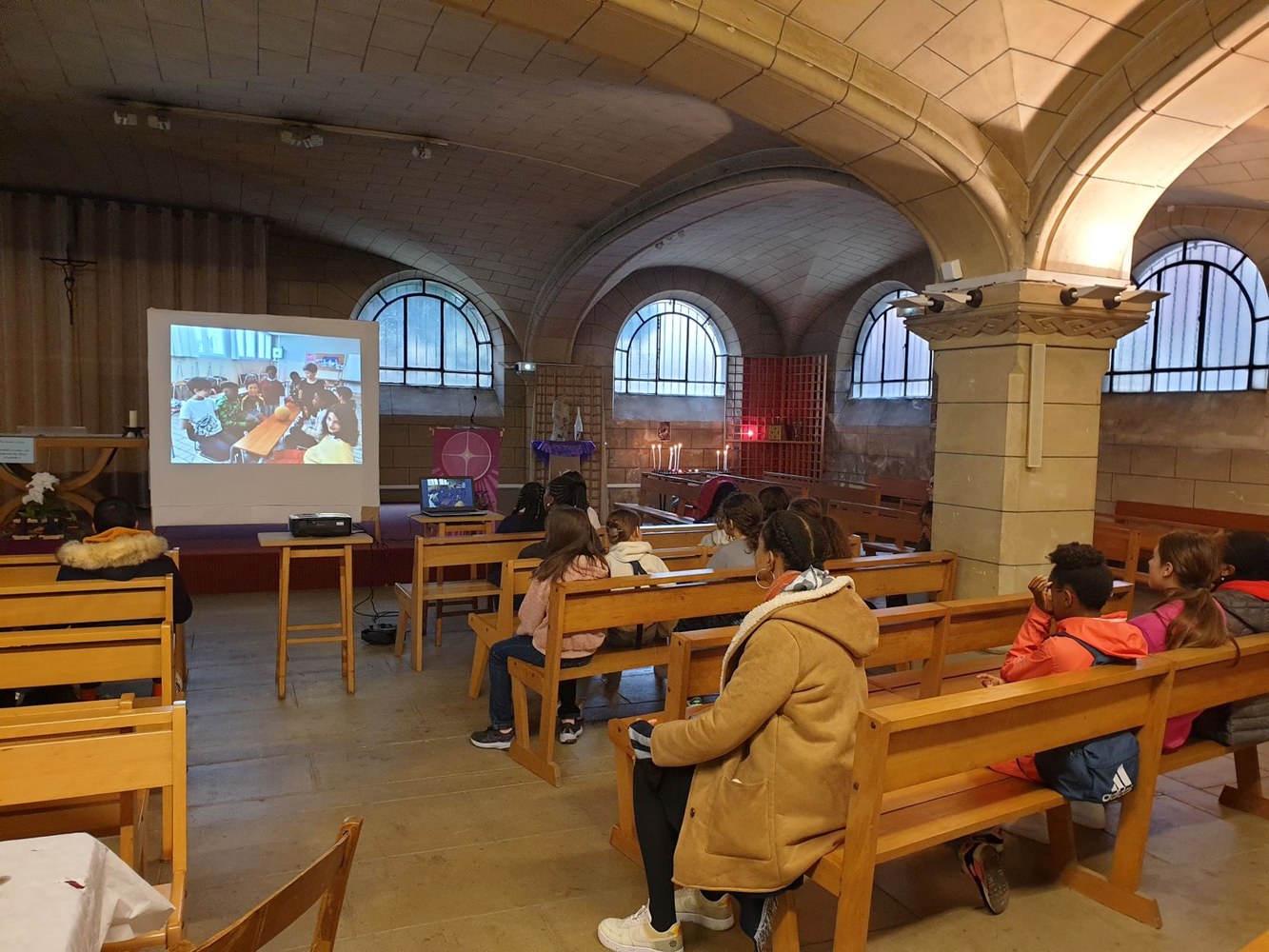 Pour le 2e dimanche de l'Avent, les jeunes collégiens en aumônerie, leurs parents et les paroissiens se sont retrouvés dans la crypte de l'église Saint-André, autour du père Adéodat et du père Dominique. Après une messe festive en l'honneur de Saint André, tous se sont réunis autour d'un repas partagé, suivi d'activités ludiques et priantes, et d'une visite guidée de l'église, conduite par François. Les gâteaux et les sacs vendus au profit de la paroisse ont permis une généreuse collecte, qui servira à financer les pèlerinages et les sorties des jeunes de l'aumônerie. Merci à tous les généreux acheteurs !