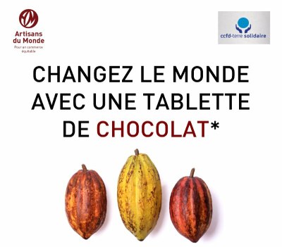 * L’achat d’une tablette de chocolat 100g Artisans du Monde à 4,20€ permet d’assurer une juste rémunération des producteurs, de garantir leurs Droits Humains et de protéger l’environnement.