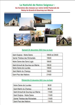 LA NATIVITE DE NOTRE SEIGNEUR : les horaires de messes sur notre unité pastorale — Unité pastorale de Noisy-le-Grand et Gournay-sur-Marne