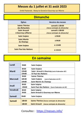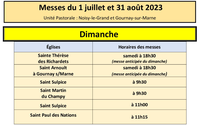 Les horaires des célébrations durant la période estivale — Unité pastorale de Noisy-le-Grand et Gournay-sur-Marne