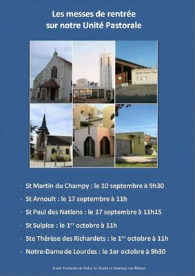 Le planning des messes de rentrée sur nos différentes églises